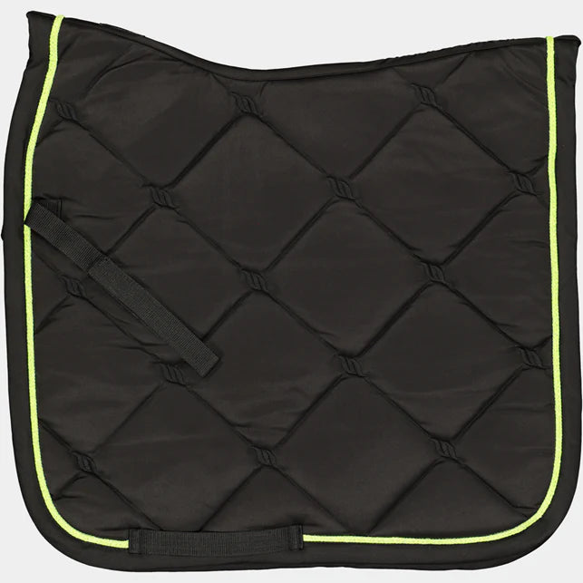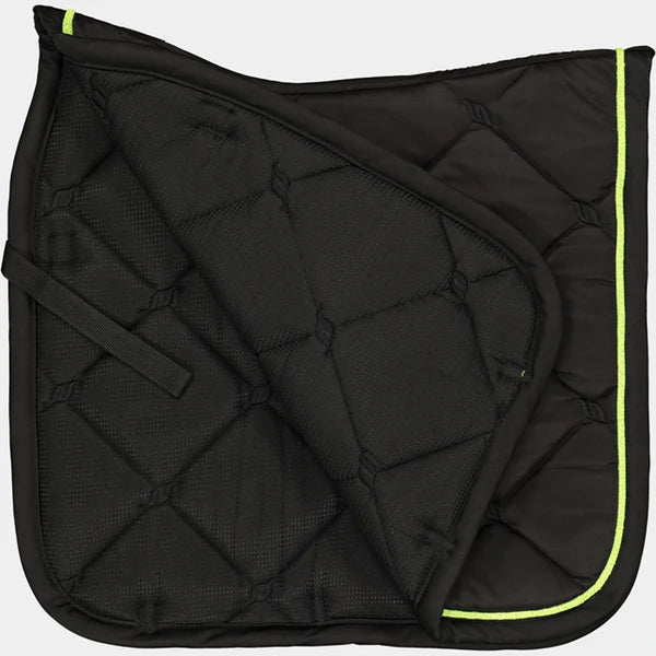 Limited edition väri, kaunis musta kiiltävä pinta ja limenvihreät nyörit. Huopien materiaali on hengittävää ja siirtää hyvin kosteutta pois hevosesta.
