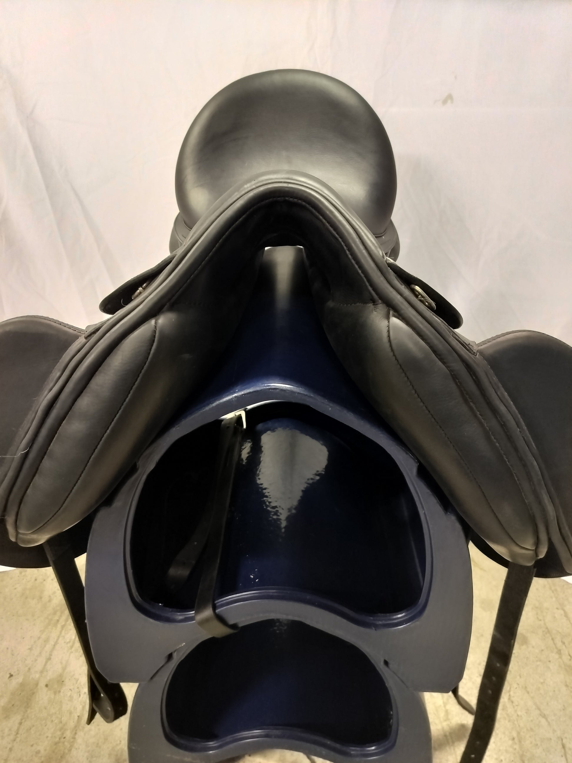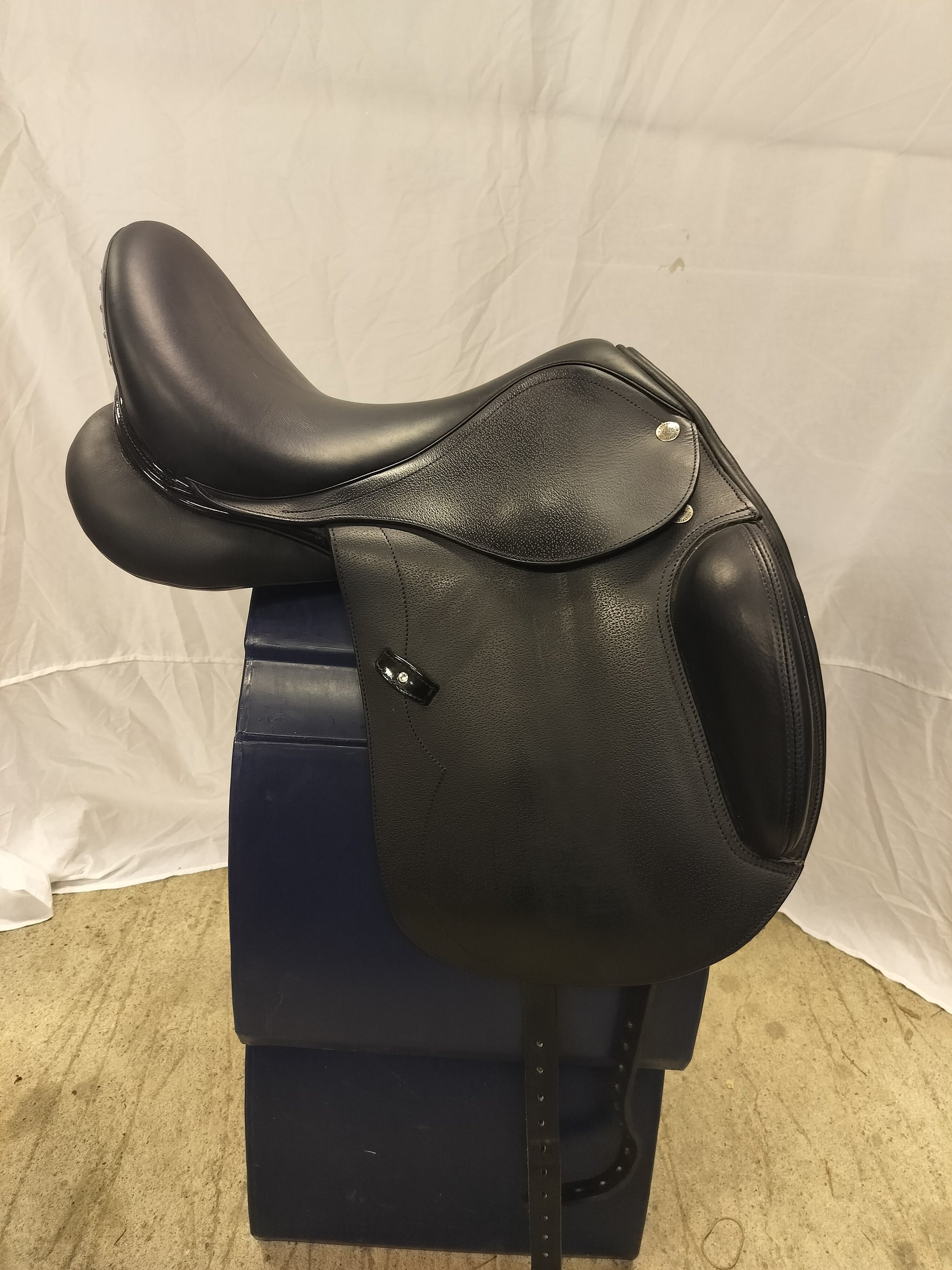 Lähes uudenveroisessa kunnossa oleva Polvorita kauniilla timantti takakaarella. Tässä satulassa on pitkä etukaari, joten siihen sopii isompikin säkä, runko on leveä, joten hevonen pääsee nostamaan rintakehää ja liikkumaan oikein. Hevosta vasten tasainen foam ja sen päällä villa. Etukaari helposti vaihdettavissa (Universal Gullet system) leveydet N-XXW. Sopii ratsastajalle joka haluaa satulan istuimesta hyvän tuen, siipi on kuitenkin hieman eteen asetettu, joten tähän sopii hyvin myös hieman pidempi jalkainen ratsastaja.