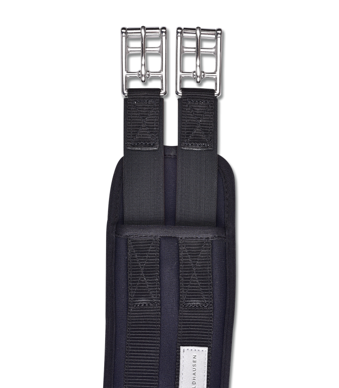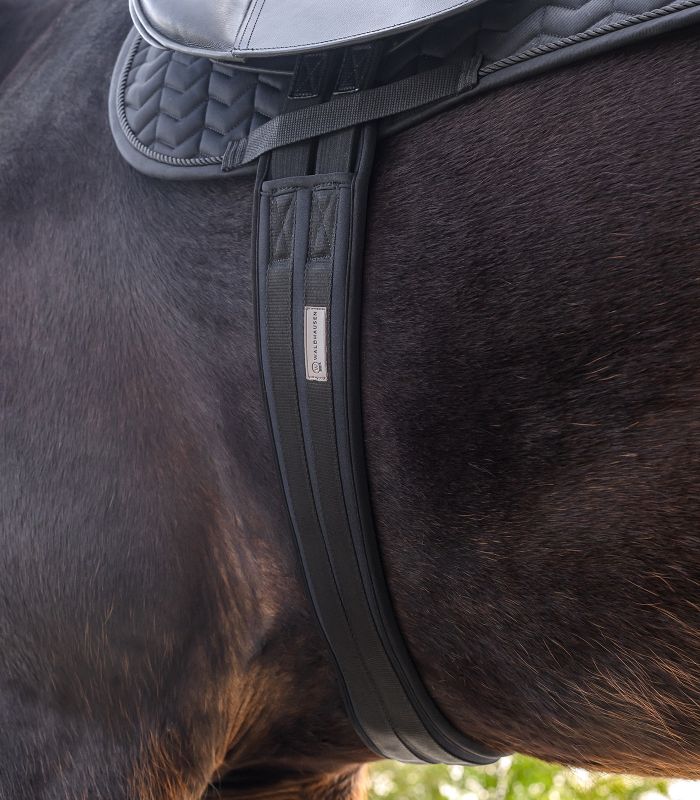 Yleisvyö jossa on pehmeä geeli hevosen vatsaa vasten. Toisella puolella jämäkkä jousto.